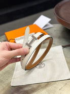 HM FOCUS BUCKLE & REVERSIBLE BRONZE BROWN AND WHITE LEATHER STRAP 13MM SILVER HARDWARE