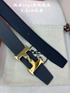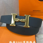HM H BELT BUCKLE & REVERSIBLE BLACK LEATHER STRAP 38MM GOLD HARDWARE