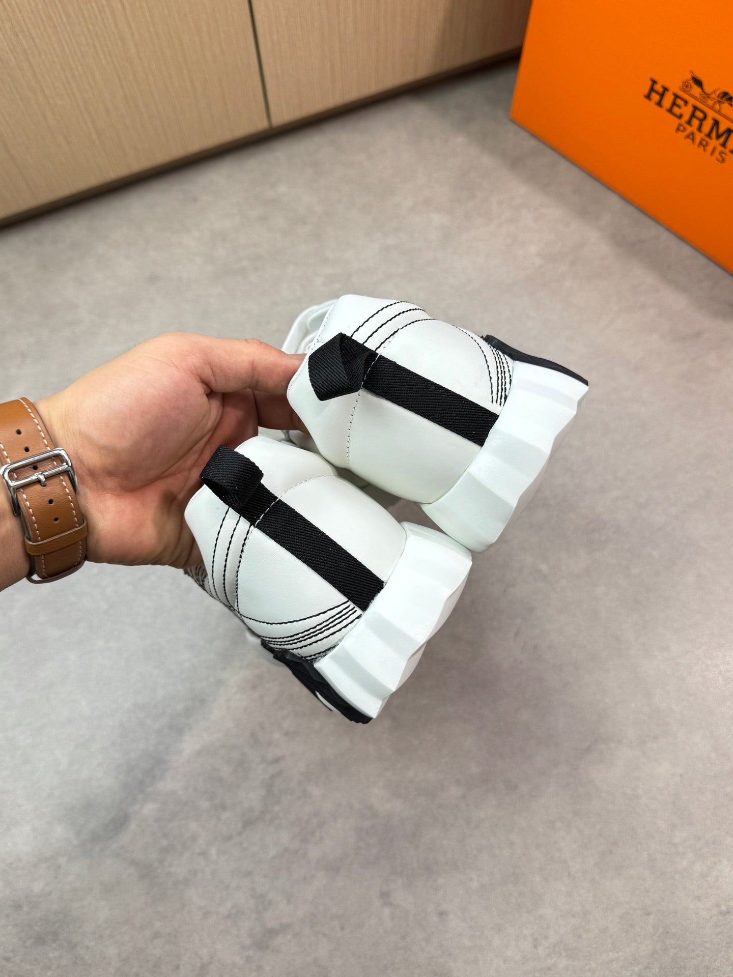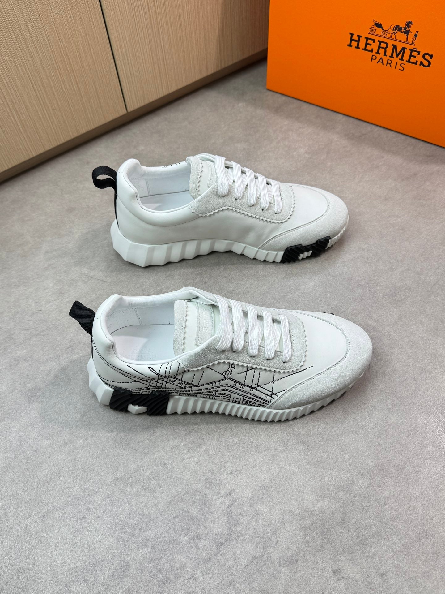 HM Men's Bouncing Sneaker White Black Calfskin Suede 696022