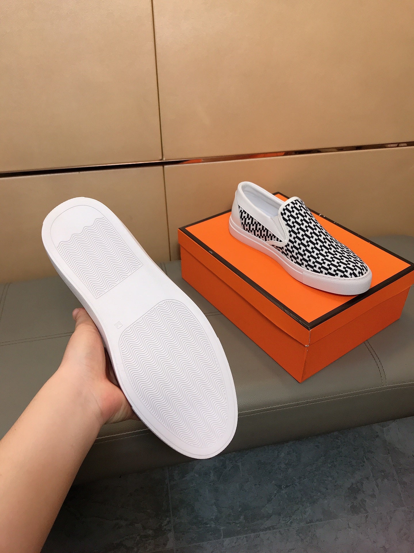 HM Men's Loafer White Black Printed Fabrics Rubber 590008