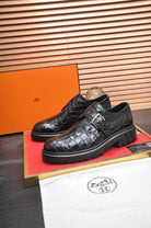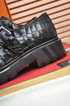 HM MONK STRAP BLACK WITH CROCODILE MOTIF CALFSKIN