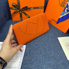 HM SILK'IN HOLED WALLET 19 ORANGE GRAINED CALFSKIN
