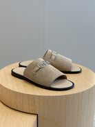 HM SILVER BUCKLE SLIPPERS LIGHT BROWN SUEDE