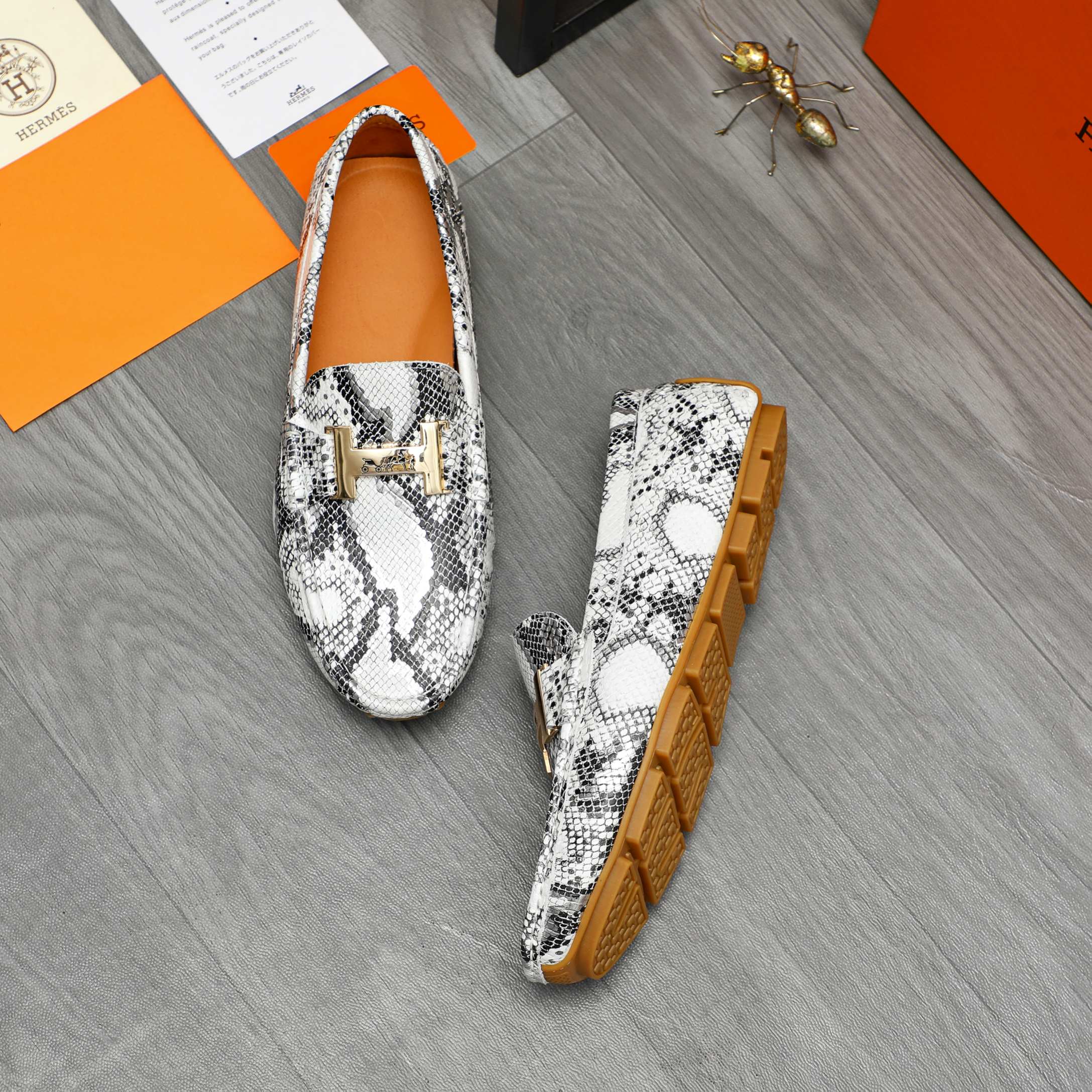 HM SNAKESKIN MOTIF LOAFER WHITE AND BLACK CALFSKIN