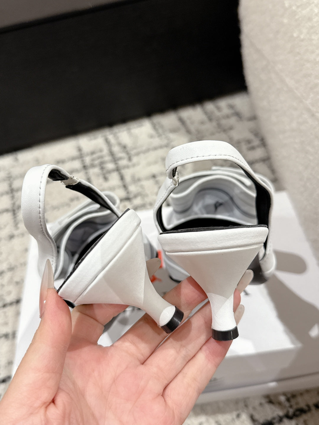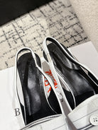 KNIFE CHEMISE 45MM SLINGBACK IN WHITE MIX BLACK COTTON AND CALFSKIN