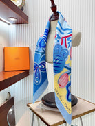 Le Cheval De Kazumi Scarf 90 CM Blue Colorful Silk Twill 347387