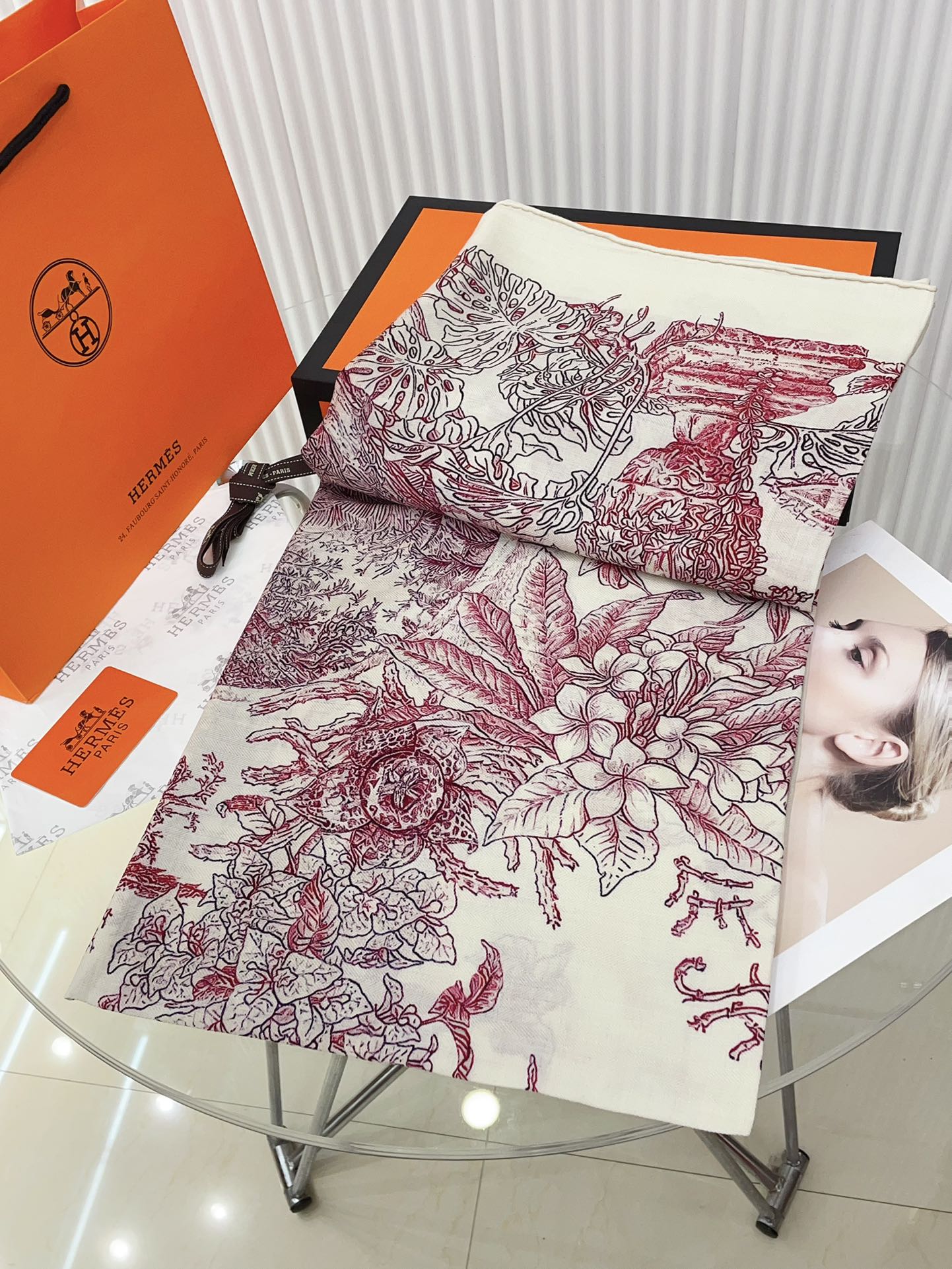Le Jardin De Leila Au Bloc Shawl 135 CM In Pink Red Cashmere And Silk 316264