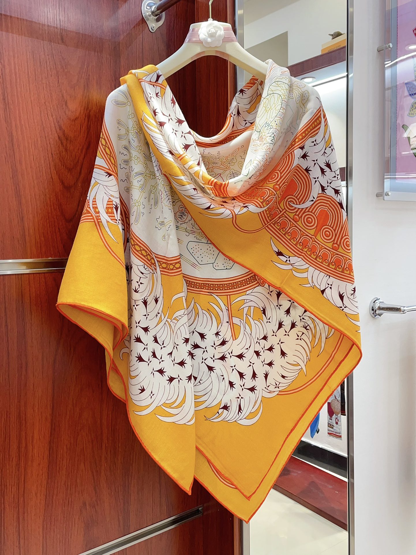 Legende Brodee Scarf 140 CM In Orange Colorful Cashmere And Silk 235415