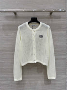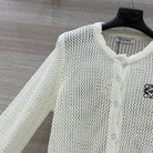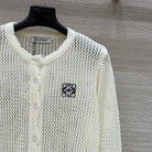 Loewe 25 Mesh Hollow Knitted Cardigan Ivory Wool
