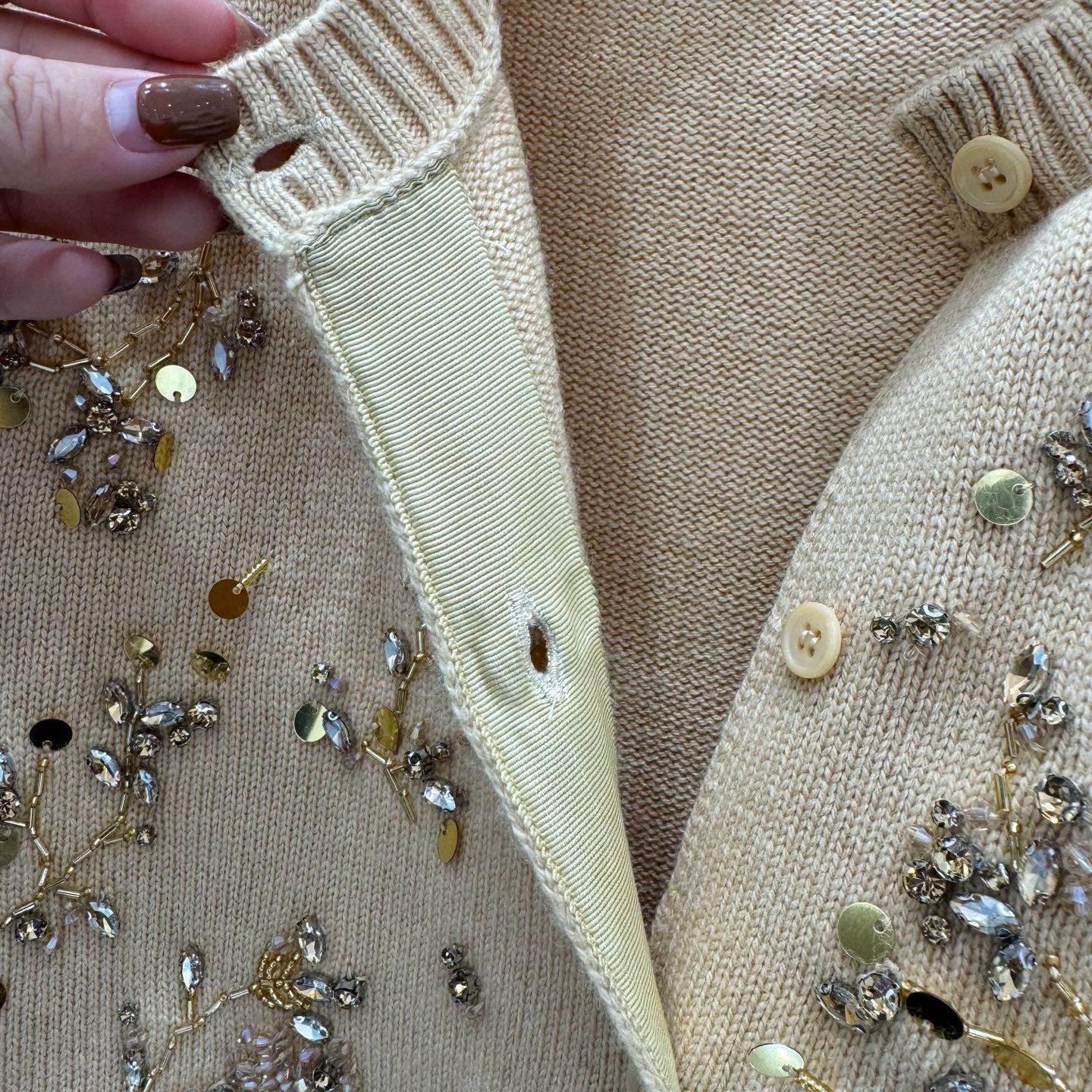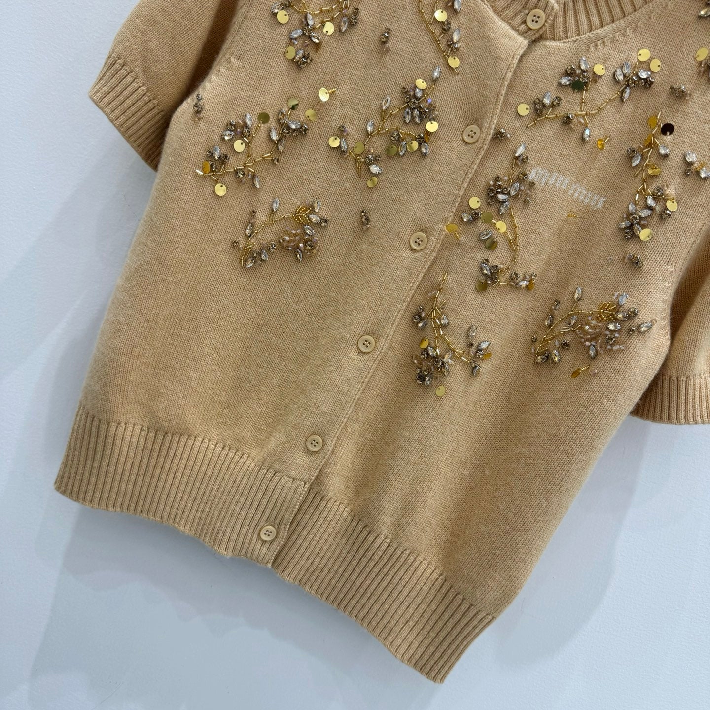 Miu Embroidered Cashmere Short Sleeve Cardigan 229364
