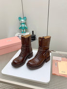 Miu Leather Laced Booties Chestnut Brown Cowhide