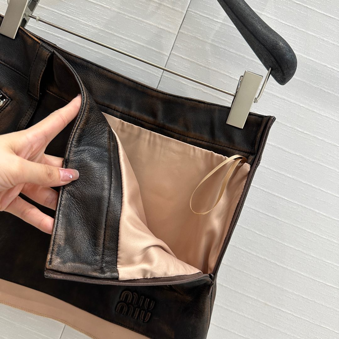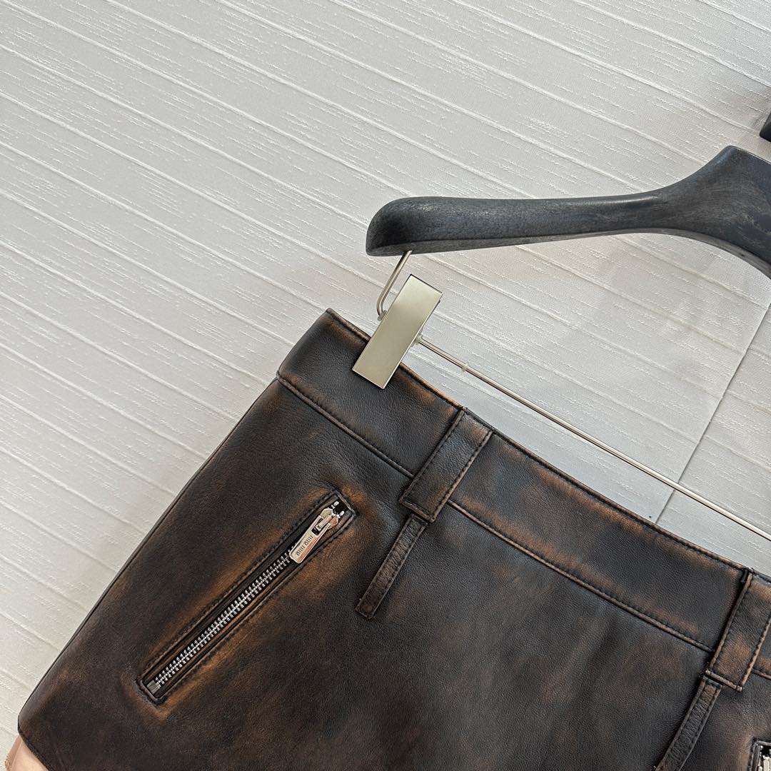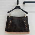 Miu Miu 25 Short Skirt Black Brown Sheepskin
