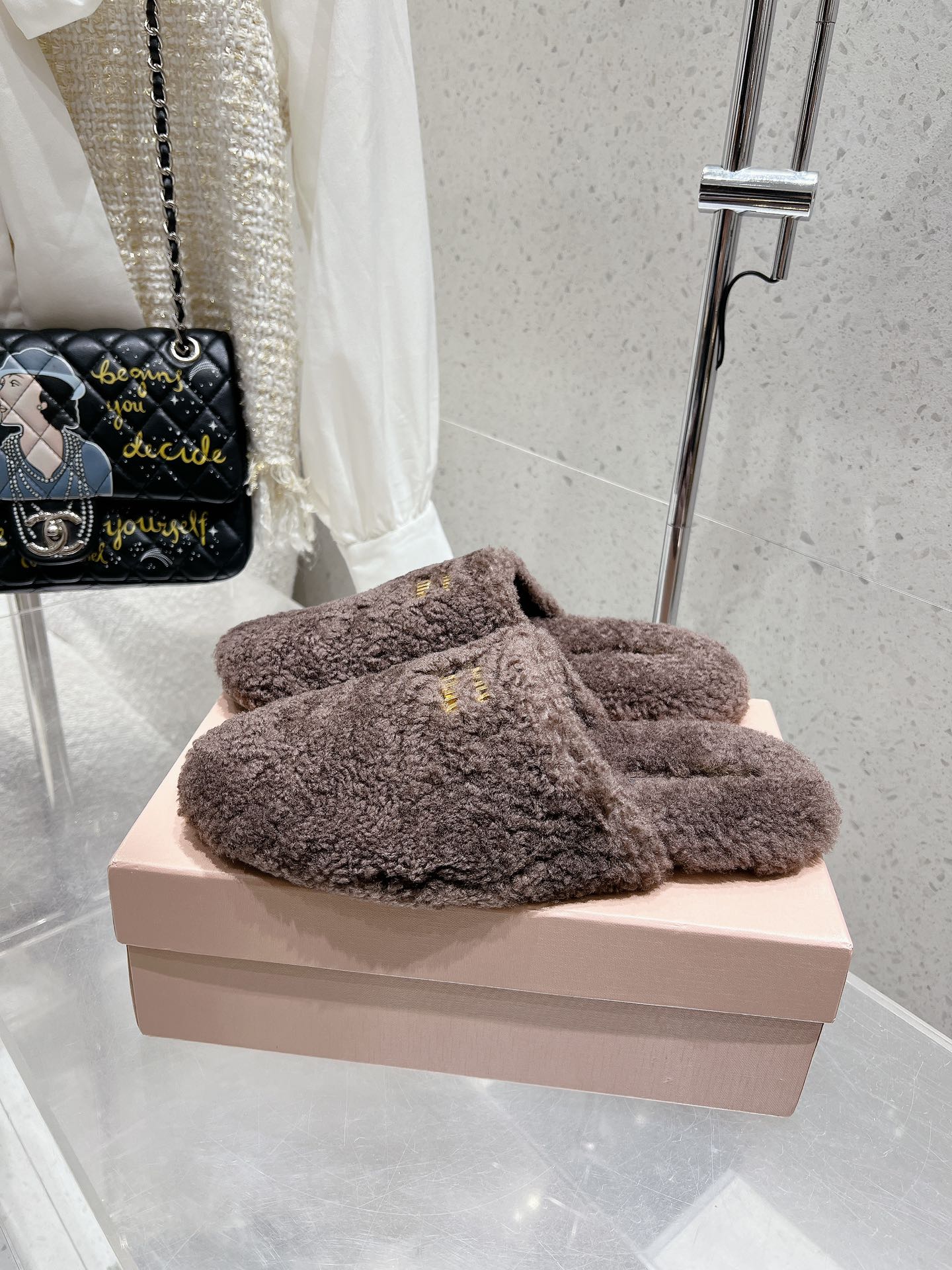 Miu Slippers Brown Earth Wool Fabric