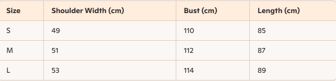 - For more information, please see the size guide below