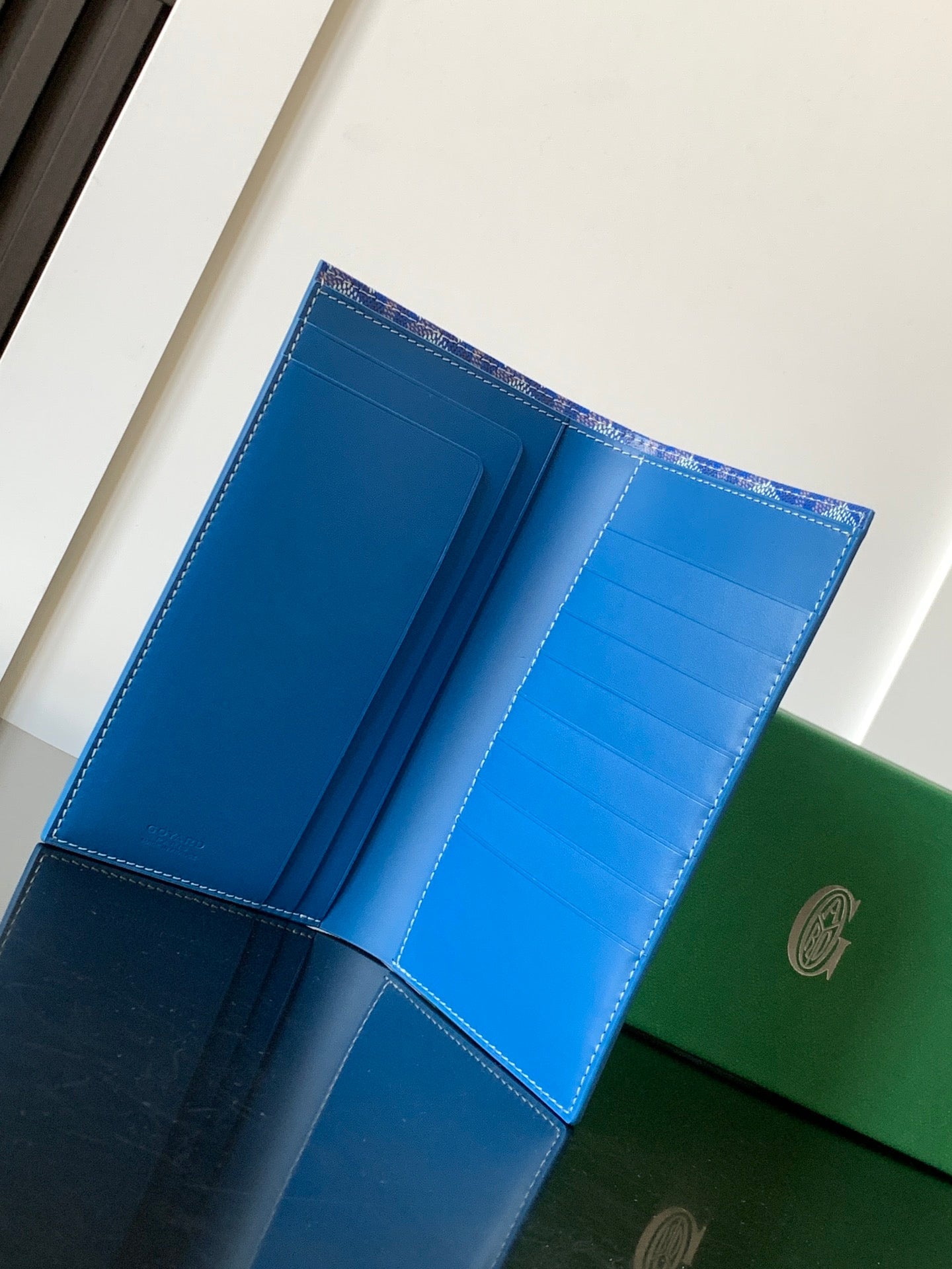 RICHELIEU CHECKBOOK WALLET 19 IN SAPPHIRE BLUE GOYARDINE CANVAS AND CALFSKIN