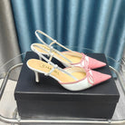 Slingback 50 White Calfskin Pink Satin Pointed Toe