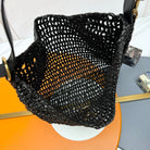 TOTE BAG 40 IN BLACK RAFFIA GOLD LOGO
