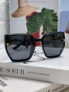 TRIOMPHE SUNGLASS 497831 IN BLACK ACETATE EMBOSSED LOGO