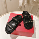 VT Rockstud Sandals Black Espadrilles Cowhide 328131