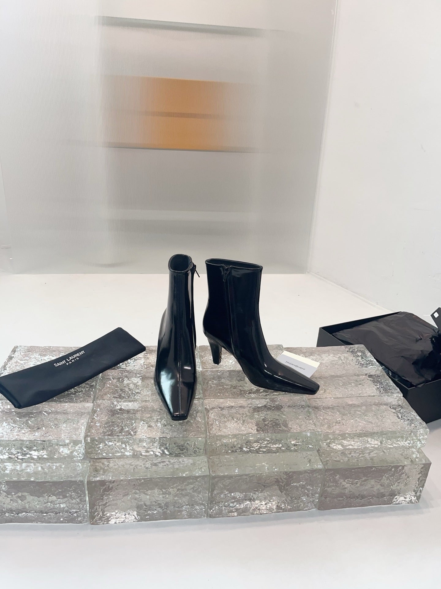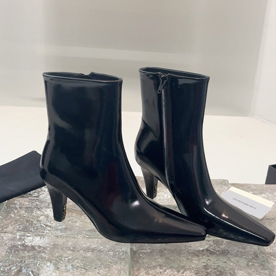 YSL 25 High-heeled Boot Black Cowhide 522267